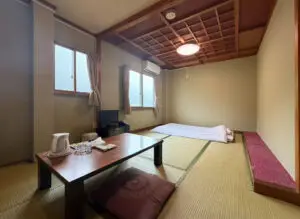 宿泊料金 お客様一人ひとりに安心とやすらぎの時間をお届けする、くつろぎのお部屋をご用意しております。料金はすべて税込み、サービス料込みです。 シングル(洋室タイプ) 税込 5,000円 シングルベッド×1シングルベッドを備えたお一人様用のお部屋です。出張や短期滞在にも最適な、静かで居心地の良い空間です。 シングル(和室タイプ) 税込 5,000円 お布団×1 畳の香りが心地よい、落ち着いた和室タイプのお部屋です。お布団でゆっくりとお休みいただけます。 ツイン(洋室タイプ) 税込 9,000円 (1人/税込 4,500円) シングルベッド×2 シングルベッド2台を備えたツインルームです。広々とした空間で、快適なひとときをお過ごしください。 ツイン(和室タイプ) 税込 9,000円 (1人/税込 4,500円) お布団×2畳の温もりが心地よい、広々とした和室タイプのツインルームです。落ち着いた雰囲気で、のんびりとお休みいただけます。 トリプル(和室タイプ) 税込 12,900円 (1人/税込 4,300円) お布団×3 畳の上にお布団を3組ご用意いたします。どこか懐かしい雰囲気の和室です。ご家族やグループでのご利用にもおすすめです。 シングル(洋室タイプ) 税込 5,000円 シングルベッド×1シングルベッドを備えたお一人様用のお部屋です。出張や短期滞在にも最適な、静かで居心地の良い空間です。 シングル(和室タイプ) 税込 5,000円 お布団×1 畳の香りが心地よい、落ち着いた和室タイプのお部屋です。お布団でゆっくりとお休みいただけます。 ツイン(洋室タイプ) 税込 9,000円 (1人/税込 4,500円) シングルベッド×2 シングルベッド2台を備えたツインルームです。広々とした空間で、快適なひとときをお過ごしください。 ツイン(和室タイプ) 税込 9,000円 (1人/税込 4,500円) お布団×2畳の温もりが心地よい、広々とした和室タイプのツインルームです。落ち着いた雰囲気で、のんびりとお休みいただけます。 トリプル(和室タイプ) 税込 12,900円 (1人/税込 4,300円) お布団×3 畳の上にお布団を3組ご用意いたします。どこか懐かしい雰囲気の和室です。ご家族やグループでのご利用にもおすすめです。